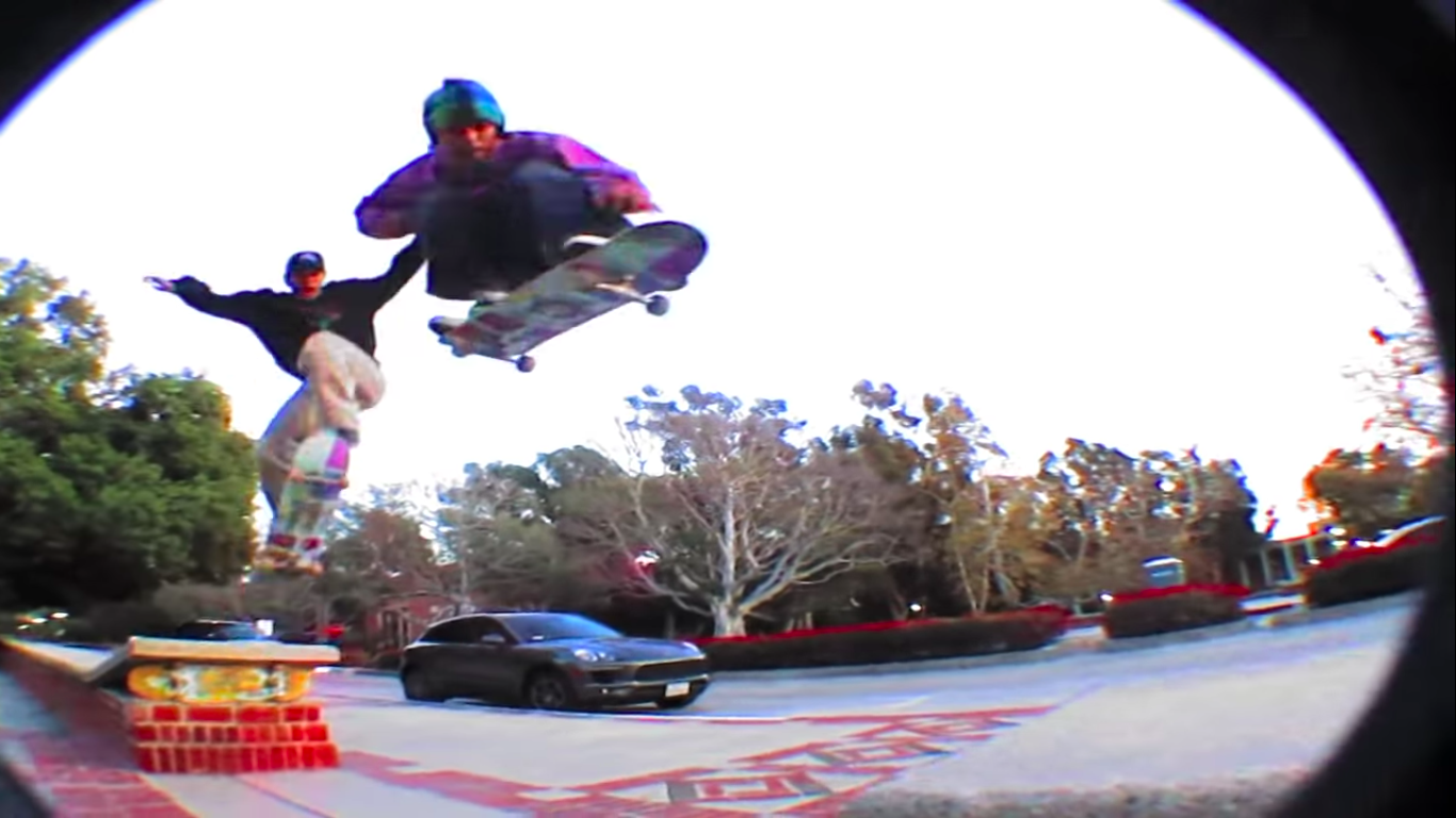 Again, as **an older millennial**, I pick up on a state of exhaustion here: with skaters operating at such an extreme level of ability, the iconic spots aren’t worth skating anymore, the cool tricks get disseminated so fast they cease to be cool by the time the video gets put out, and should you want to go big, get ready to literally kill yourself. It can seem, really, that there just aren’t a lot of options left, and that’s the situation just within skateboarding, without mentioning the challenges of paying rent in a rapidly changing world, or worrying over your own lack of agency as the world grows warmer, and possibly worse. But one of the things that this video achieves, as does all Frog releases, is its ability to make Los Angeles feel small, and that, while the fires grow to be an ever more regular occurrence, and images of the city seem more and more dystopian, Frog videos are grounded in the local. Such intimacy bodes well. Rekindling the subcultural sense of belonging is hard to do without creating an artificial sense of scarcity, but Frog’s knowing sincerity answers the call to accessibility, and the general democratic sentiment that skateboarding should be fun. And it does so without the kind of apolitical nonsense that statement often permits, given that “skating should be fun” is often wielded to silence anyone with an opinion, and dog whistles to other jock-minded luddites. But here’s the point: though the company’s blend of self-awareness and innocence can leave you in an uncomfortably indeterminate emotional state, Frog is fun, even when it smiles through the pain. Because, Evan Frankie (frog) reminds us, maybe the real skating was the friends we made along the way. •••